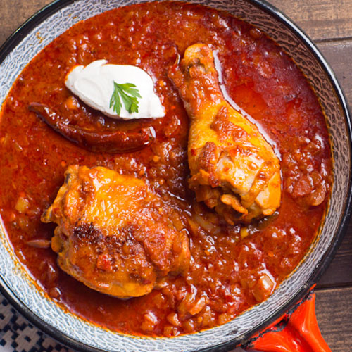 Made of chicken leg with paprika, sour cream and nokedli as a side dish